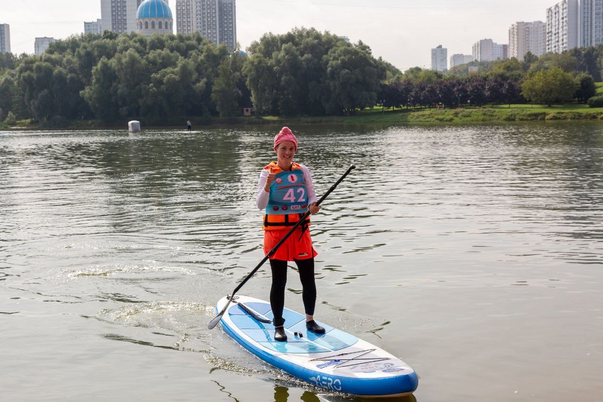 Кстати, спортсмены-сапсерфингисты соревнуются не только летом. Ежегодно в январе проходит главный зимний старт – фановая гонка “Зы-Зы-Зы SUP-challenge”. В этом году, например, гонка состоялась 20 января. Была облачная с прояснениями погода, температура воздуха минус пять градусов, воды – около ноля. Спортсмены шли по открытой воде Истры семь километров: “Это и красота, которую видишь с воды, и заснеженные берега и льдины, и страх оказаться в ледяной воде – все детали делают подобное приключение незабываемым”, – вспоминает Кристина.