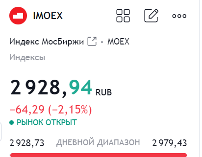 Именно так можно описать открытие недели по российскому рынку. Индекс в минусе на 2% и торгуется около 2930.