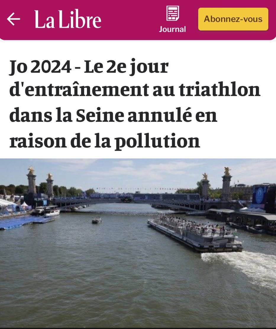 Второй день тренировок по триатлону на Сене отменен из-за бактерий и грязи