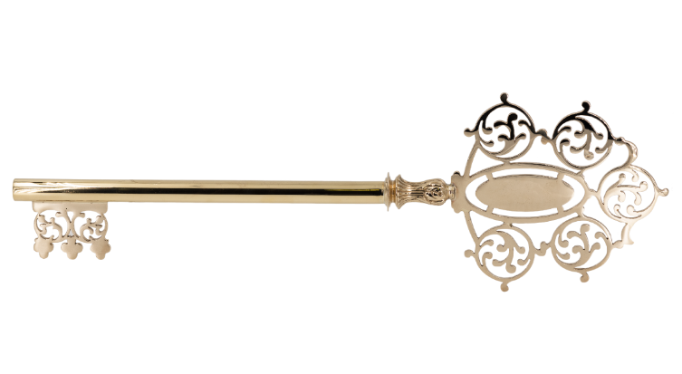 Памятный подарок становится скрытой рекламой бренда. К его изготовлению привлекают талантливых художников и дизайнеров. Изделия получают фигурную головку, украшенную вензелями и ажурными вставками, сложную форму рабочей части. Сувенирные ключи обычно гораздо крупнее мебельных или дверных. Получателям их вручают в красивых кожаных футлярах с яркой атласной подкладкой, которые привлекают внимание на полке шкафа или витрины для сувениров. Иногда изделие оснащают креплениями, позволяющими повесить их на стену. Посетители учреждения или квартиры, украшенной сувенирным ключом, непременно бросят на него взгляд. Дополнив футляр или само изделие латунной табличкой, гравировкой с названием бренда или объекта, компания сможет рассказать о себе широкому кругу потенциальных клиентов. Сувенирные ключи делают из золотистой латуни. Долговечность металла гарантирует, что подарок смогут увидеть многие.