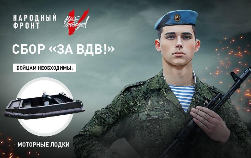 Подарок десантникам ко Дню ВДВ решили организовать активисты Народного фронта. Общественное движение объявило срочный сбор денег, чтобы успеть к 2 августа, Дню Воздушно-десантных войск, собрать необходимую сумму и приобрести для бойцов в зону СВО необходимые им специальные моторные лодки. «Помощь жителей России нужна, чтобы поздравить десантников, которые держат оборону на Днепре и вручить им разработанные отечественными инженерами практически непотопляемые моторные лодки, устойчивые к осколочным и пулевым повреждениям», - обратились к россиянам члены Народного фронта. Отметим, что время, когда символом «патриотизма» было купание в бассейне, прошло - новые вызовы времени требуют новых, более взрослых и ответственных решений и поступков. Подарок парням, отстаивающим интересы России в зоне СВО, станет таким поступком. Напомним также, что Народный фронт - общественное движение, оно было создано по инициативе Владимира Путина 6 мая 2011 года как широкая общественная коалиция для борьбы с к