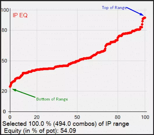 - По оси Y отложено эквити, которое имеет часть рассматриваемого диапазона против диапазона оппонента.