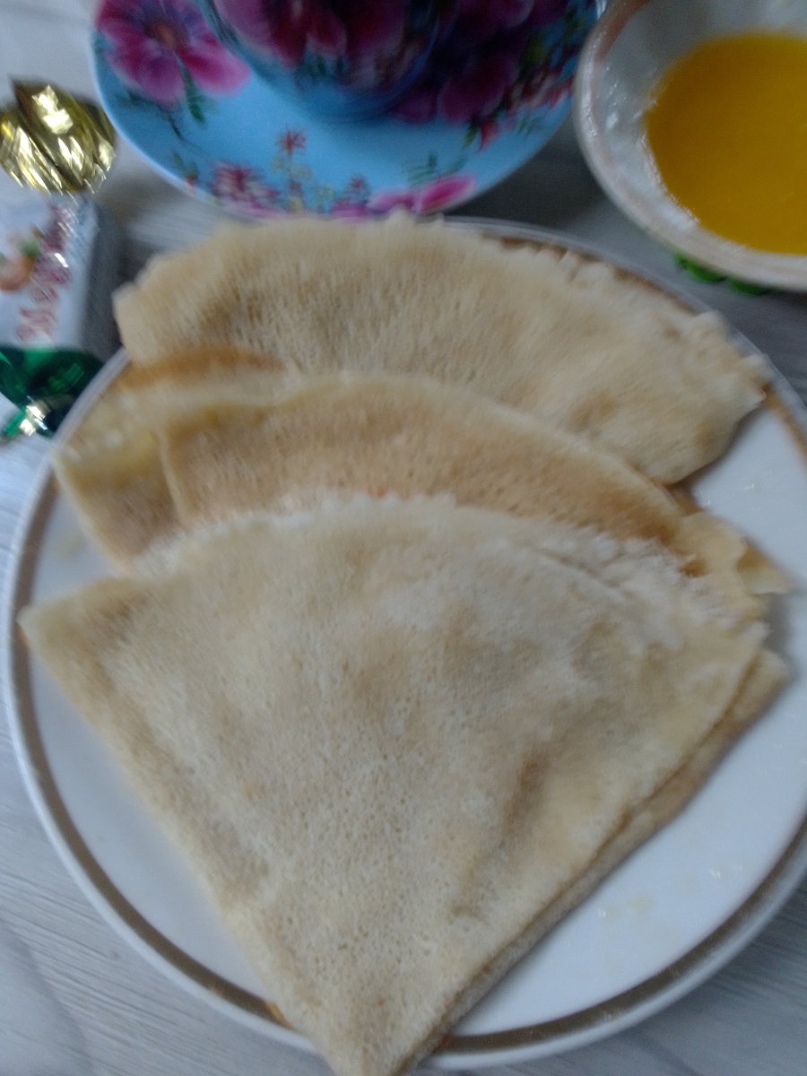 Пусть сегодня с самого утра все будет лучше, чем вчера. Доброе, доброе утро! С вами Надежда, и я приглашаю вас на мою кухню, где покажу вам наше меню на день. Утро понедельника. Всех с началом новой продуктивной недели. А я продолжаю отдыхать. Пятый день отпуска. Дни летят, а работа не движется. Каждый день дожди, и сегодняшнее утро тоже хмурое. Моросит нудный дождь. Уром температура была всего + 8 градусов. Разве это летняя температура? Одно радует, что в такую погоду я могу сидеть дома, а не тащиться на автобус. Завтрак: блины, которые мы ели со сливочным маслом, как всегда черный растворимый кофе без сахара с дежурной шоколадной конфетой Медунок. Тесто на блины я заводила на отваре от макарон, которые я вчера готовила на ужин. После ужина и пекла блины, блины у меня сегодня большие, так как пекла на большой сковороде, время было уже позднее. Блины получаются вкусные и очень – очень бюджетные. Чтобы время не терять зря, погода ужасная, сразу же взялась за приготовления обеда. Бу