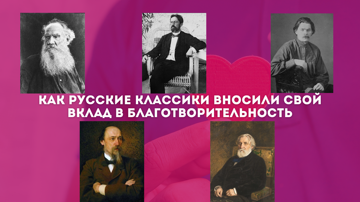 Толстой был одним из самых активных деятелей в сфере благотворительности. Много лет он оказывал помощь бездомным и нуждающимся, а в 1891-1892 годах, когда страну накрыл голод, он создал штаб помощи нуждающимся в Рязанской губернии. Вместе с этим он начинал открытие пунктов питания в разных регионах. За 2 года Лев Николаевич открыл более 200 бесплатных столовых. Ежедневно в них питалось около 13 тысяч человек, а сам писатель собирал всю отчетность о собранных и потраченных средствах. Максим Горький родился в Нижнем Новгороде, поэтому его благотворительная деятельность тесно связана с этим регионом. Например, в 1900 году он вместе со своими друзьями организовал первую новогоднюю елку для детей из бедных семей. На ней помимо торжественной части проводили вручение подарков — сладостей, одежды и обуви. Помимо этого, писатель внес свой вклад в развитие будущих творцов. Он создал фонды для поддержки бедных студентов, писателей и ученых. Некрасов придавал много значение тому, чтобы нуждающиеся