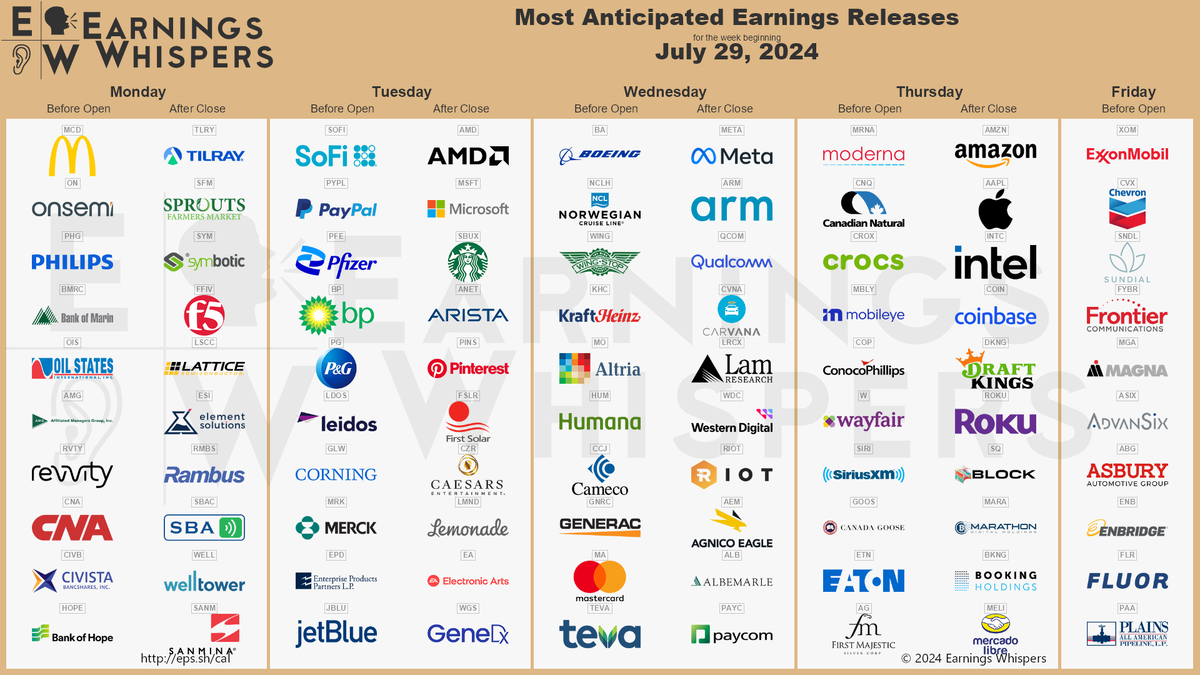 Текущая неделя без преувеличения должна определить движение рынков на ближайшее время 🔸Во-первых отчитываются крупнейшие американские компании. Среди них Apple, Amazon, Meta, Microsoft. На прошлой неделе рынок акций начал корректироваться 🔽после отчёта Google. Рынки стали сомневаться что многомиллиардные вложения в инфраструктуру ИИ принесут скорую отдачу. А именно тема ИИ была ключевым драйвером роста последний год. Поэтому отчёты остальных крупных игроков будут критичны. Разочарование может вызвать вторую волну снижения. И наоборот, позитивные отчёты и комментарии от компаний должны помочь рынку оттолкнуться от текущих уровней и продолжить рост. 🔸Во-вторых, в среду заседает ФРС🇺🇸. Консенсус, что ставку в этот раз не снизят, но дадут четкий сигнал, на снижение (скорее всего в сентябре). 🔸Плюсом тоже в среду будут озвучено решение по ставке Банка Японии🇯🇵. Там наоборот ждут повышения. Почему это тоже важно: в Японии очень низкие ставки, поэтому распространена стратегия, когда и