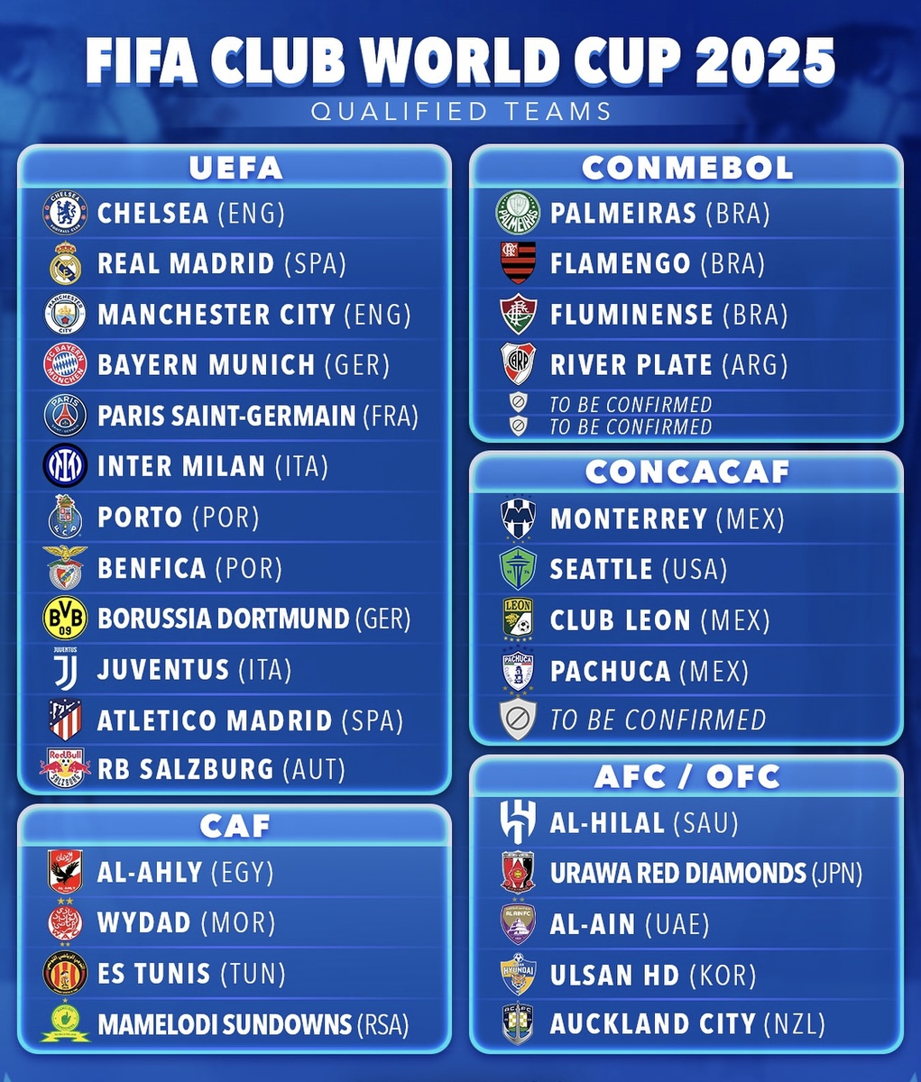 Стали известны 29 из 32 команд, которые примут участие в клубном чемпионате мира. Турнир пройдет в США с 15 июня по 13 июля 2025 года. Еще три клуба определят следующим образом: