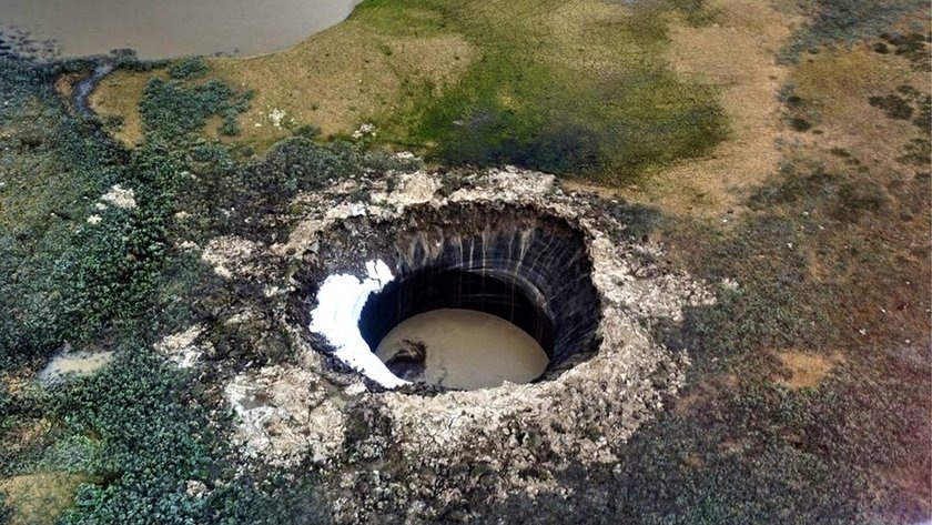 Уже не первый год в Сибири фиксируется странная активность — загадочные «морозные курганы», разбросанные по всей территории региона, иногда буквально лопаются, оставляя после себя гигантские дыры в земле. Одним из первых примеров стал 20-метровый «Ямальский кратер», обнаруженный на одноименном полуострове в 2014 году, в 42 километрах от Бованенковского газового месторождения. С тех пор ученые заметили еще 7 подобных ям на Ямале и соседнем Гыданском полуострове.