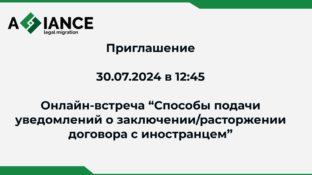 30 июля в 12:45 приглашаем работодателей иностранцев на бесплатную онлайн-встречу.