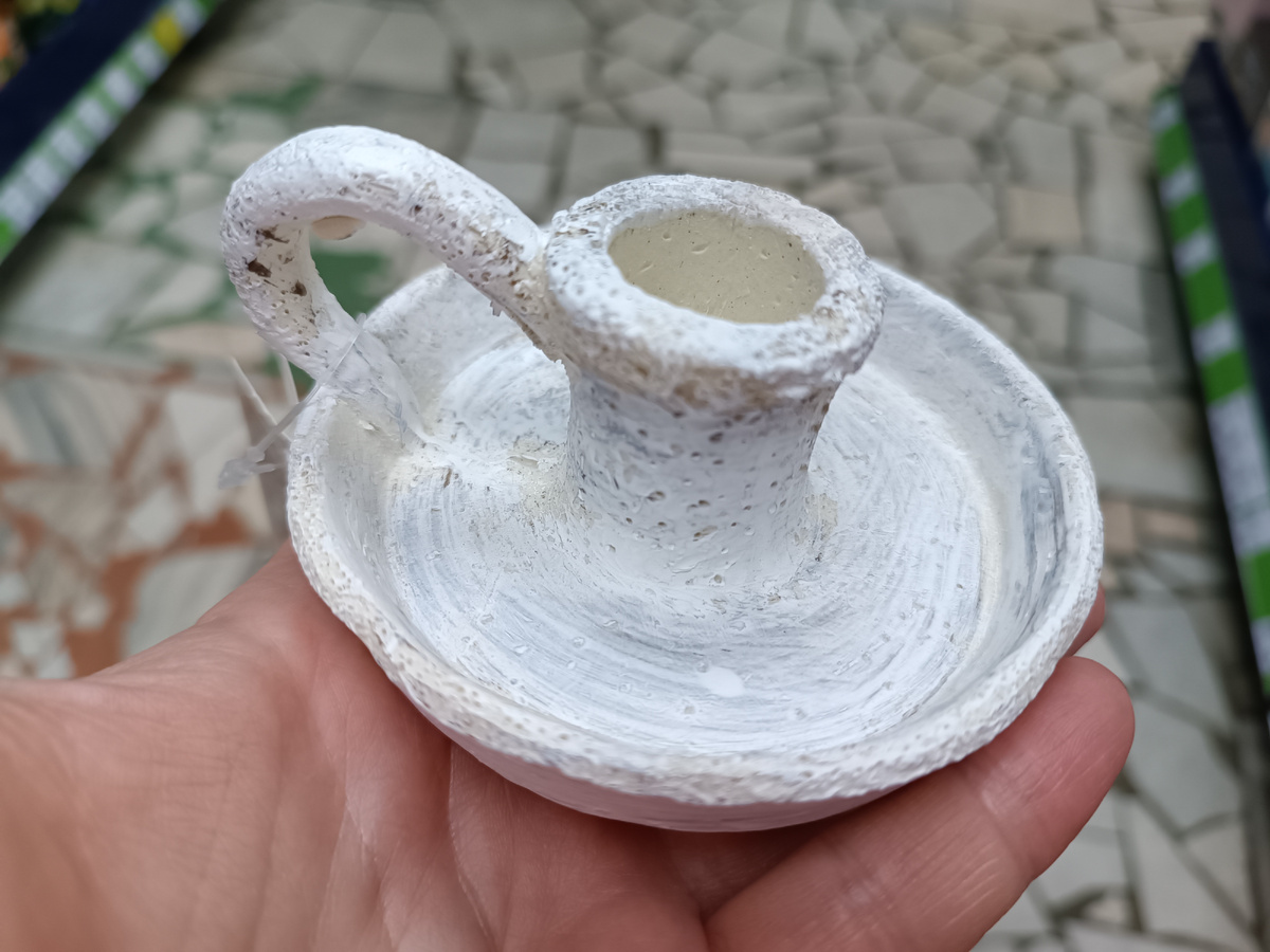 Вот из нее же подсвечники, прикольные, рыхлыми кажется материал, но мне нравится. Ручка интересная - как будто от кофейной чашки, и удобно переносить.
