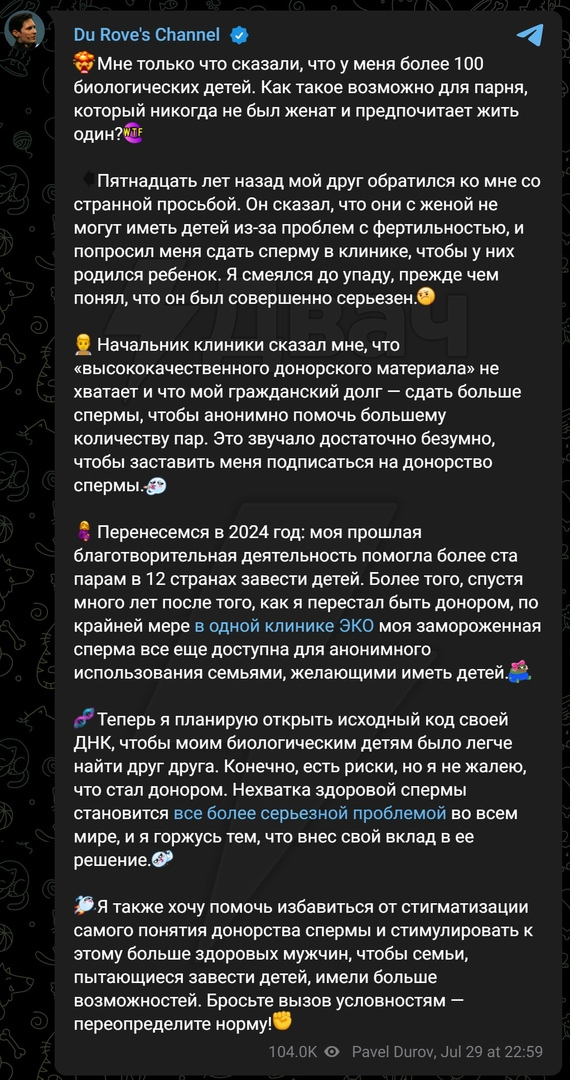Оказывается Дуров много лет донатил в специализированные центры. И теперь Павел заявил в своем официальном канале, что благодаря его «высококачественному материалу» на свет появились более ста детей. Это не фейк. Павел Дуров выглядит сейчас совершенным. Но раньше, в молодости он выглядел совсем по-другому. Павел Дуров себя сделал. Есть огромная разница между Павлом Дуровым 20 лет назад и сейчас. Генетический Павел на фото слева. А на фото справа — улучшенная специалистами версия Павла. Но ведь так хочется думать, что он такой красавчик сам по себе. Да и сам Павел уже и забыл каким был. Дуров кардинально изменил свой имидж. Пересадка волос. Окрашивание в брюнета. Пластика и очень качественная косметология. Каждый день фитнес зал и правильное питание сделали свое дело. Павел Дуров стал практически совершенным мужчиной. И он это не скрывает. А наоборот, всячески демонстрирует этот факт всему миру. Его фотографии пугающе совершенны, как будто их сделал Искусственный Интеллект. Если э