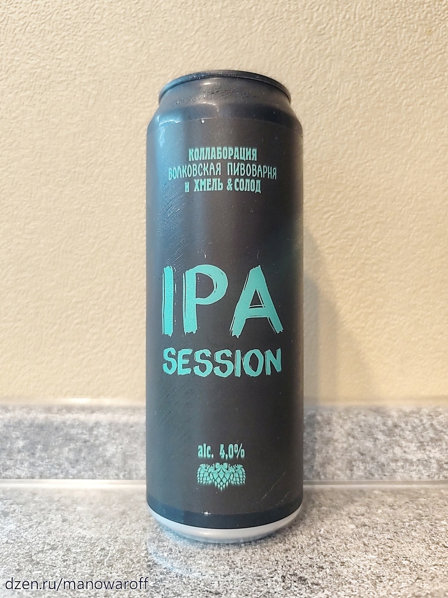 Давненько я не заглядывал в магазины "Хмель&Солод". Но на днях решил туда зарулить, чтобы взять разливного кониксовского пилса с хеллесом, ибо разливное "Рижское" от "Вятича" в последнее время испортилось (брал в разных точках - везде в пиве какой-то неприятный привкус). Пока мне наливали пивас, глянул, что интересненького имеется в холодильниках. И заметил там пару сортов пива, созданных сетью этих пивных магазинов совместно с парой известных пивоварен. Прихватил оба сорта на пробу. И начнем дегустацию с пива под названием IPA Session, сваренного в коллаборации с "Волковской пивоварней". Появился этот сорт еще в декабре прошлого года. Судя по всему, варить его будут регулярно, поскольку моя банка появилась на свет в июне нынешнего года. А вскрыл я ее через месяц после розлива. Срок годности составляет шесть месяцев при хранении в холодильнике. Маркетологи не придумали никакой изумительной истории об этом пиве, так что приступаем к дегустации. ТТХ: Пиво соломенное, прозрачное. Пены вес