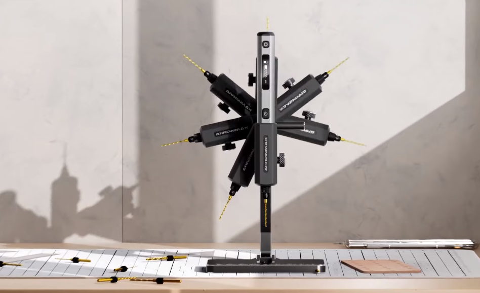 В комплект входят 10 различных прецизионных бит, которые подходят для сверления пластика, кожи и других материалов.
