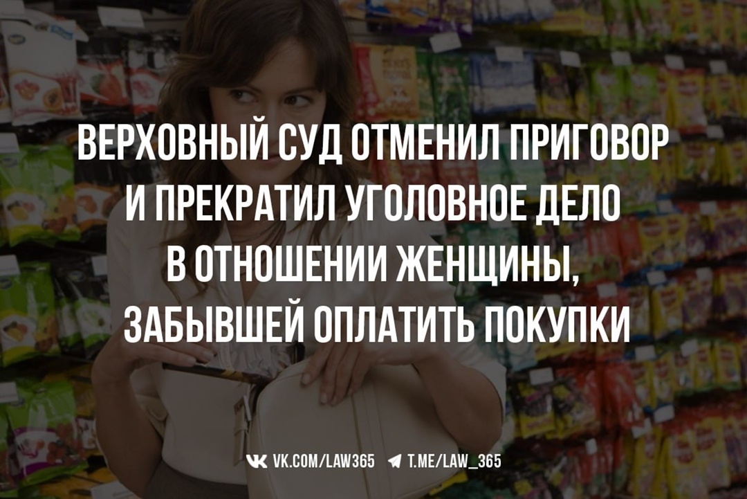 Верховный суд отменил приговор и прекратил уголовное дело против женщины, которая забыла оплатить покупки.