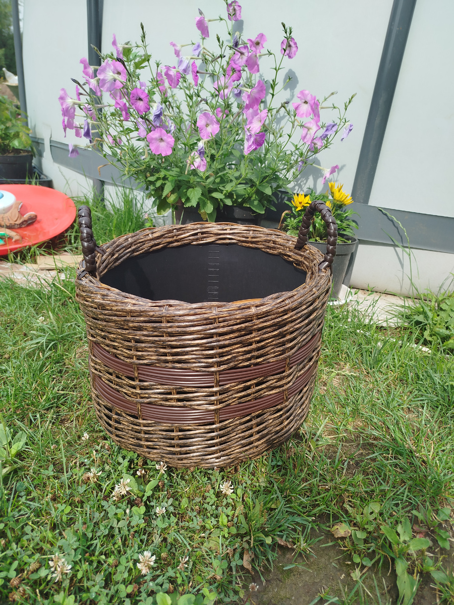 Оставшимся свободным концом лозы я плотно обмотала основание ручки. Но мне показалось, что для кашпо на 20 литров это выглядит немножко хлипко.