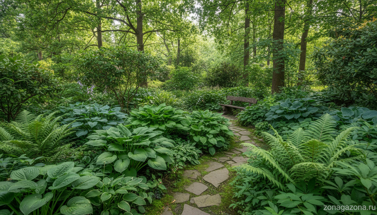 Для хорошего развития растениям, помимо питательного грунта, необходимы три компонента: свет, тепло и вода. Однако на дачном участке невозможно обойтись без построек, высоких деревьев, забора, которые дают тень. Далеко не каждый цветок, кустарник приживется в том месте, где недостаточно солнечного света. Основываясь на советах ландшафтных дизайнеров. Мы расскажем в этой статье, что посадить в тени. В абсолютной тьме вряд ли будет что-либо расти. Но в полутени, под ветками деревьев, куда проникает рассеянный солнечный свет, или возле стен, куда солнце заглядывает в определенные часы, вполне можно сажать овощи, цветы, травы. Многие дачники не видят различия между культурами, растущими в тени. А она довольно существенная. Теневыносливыми называют такие растения, которые хорошо развиваются при солнечном свете, но могут выдержать тень. Тенелюбивыми же считаются такие культуры, которые хорошо растут в затененных местах, а на солнце получают ожоги, могут погибнуть. В своей подб