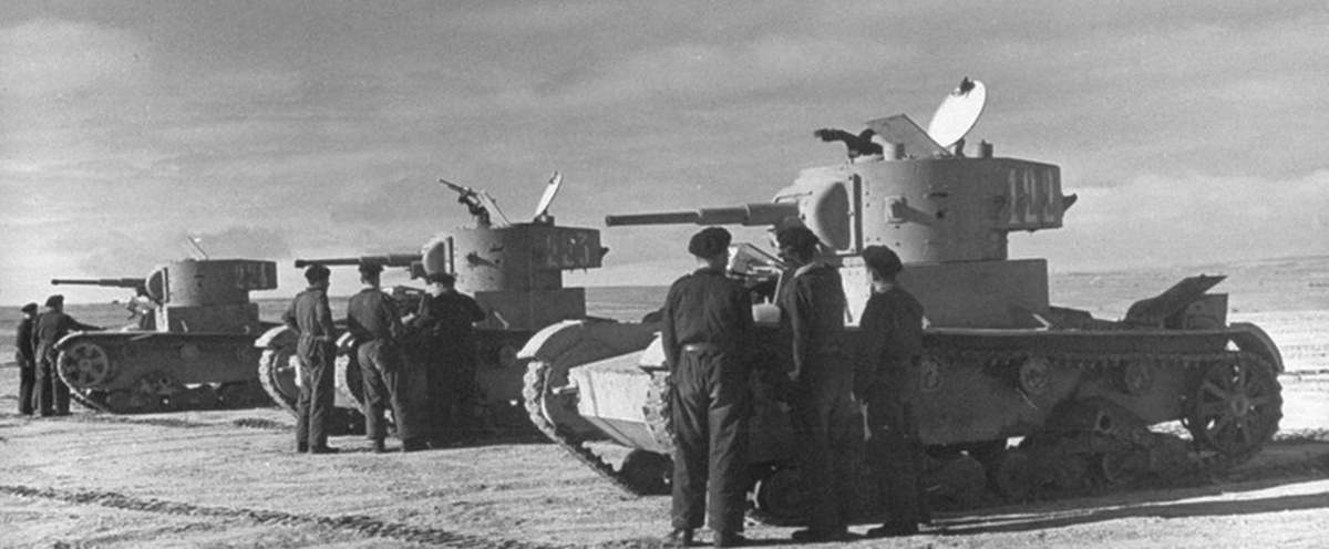 13 октября 1936 года советское судно «Комсомол» доставило в испанскую Картахену первую военную помощь для правительства республики, которое СССР решил поддержать в Гражданской войне. Это были 50 танков Т-26 с военными инструкторами и прочий вспомогательный груз. Участие наших специалистов в боевых действиях не предполагалось, они должны были лишь обучить республиканцев. Однако негативно складывающаяся обстановка внесла свои коррективы, и советским танкистам пришлось принять боевое крещение, впервые вступив в танковые сражения с реальным противником. Советские Т-26, вооружённые 45-миллиметровыми пушками, были на то время довольно серьёзной силой и значительно превосходили вооружённые пулемётами танкетки противника. Однако в бою, помимо технического превосходства, многое решает умение воевать. Боевой опыт накапливался постепенно и без потерь не обошлось. Обучение первой группы испанцев началось 17 октября и должно было закончиться в ноябре, но 26 октября учебный центр был поднят по трево