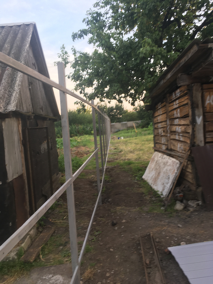 Приступили к демонтажу старого забора. Сняли плоский шифер и прожилины. Прожилины были из арматуры наверно 22 мм в диаметре, основательно... но бестолково...
