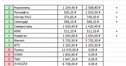 Приветствую вас на моем канале. Проверив в очередной раз баланс своей карты, я обнаружил там какую-то выплату. Оказалось, что это дивиденды от МТС подъехали 💸 Далее действуем по заранее отработанной схеме. Деньги перекидываем на ИИС. Затем, я захожу в свою таблицу и смотрю, какие акции она мне порекомендует к покупке. Благодаря тому, что на счете оставалось чуть более 90 рублей от прошлых покупок, мне хватило этих денег на один лот Норникеля. Его то я себе и купил. Впереди еще остались только дивиденды от Транснефти, в размере 770 рублей. А далее будет перерыв в дивидендных выплатах до осени. Но не смотря на это, пополнения счета продолжится с зарплаты и Дзена. Так что и покупки акций будут продолжаться. Тем боле, что из просадки мы еще не выбрались. А это значит, что покупки сейчас особенно выгодны, с точки зрения долгосрочного инвестора. А у меня пока на этом все. Пишите, на что вы решили потратить дивиденды от МТС? Если еще не подписаны, подписывайтесь, и на данный канал, и на мо