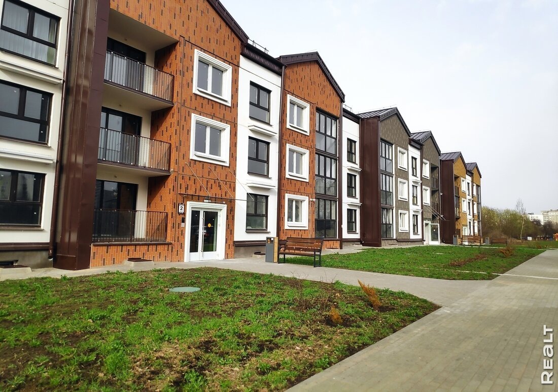 Этот проект МАПИДа на этапе стройки интересовал многих минчан. Действительно, дома «Английского квартала» запроектировали не такими, как стандартное жилье Минска − всего 3 этажа, стильные фасады, тихое место в частном секторе, но рядом с метро. Сдали жилой комплекс в прошлом году, а большинство квартир расхватали еще на старте продаж. Сейчас среди вариантов остались только четырехкомнатные квартиры. Их с апреля пытаются продать через аукцион Минского городского центра недвижимости. Ближайшие торги назначены на середину августа. МинскЯндекс Карты — транспорт, навигация, поиск мест В новостройках всего 86 квартир (по 43 − на каждый дом). Все жилье сдается с черновой отделкой. Новоселов ждут стилизованные «под кирпич» фасады, входы в подъезды с уровня земли, окна с пониженным подоконником, подъемники для маломобильных групп, вместительные велобоксы. Отапливаться жилье будет от блочно-модульной газовой котельной. Квартиры оборудованы под электроплиты, выполнена разводка электрики с установ