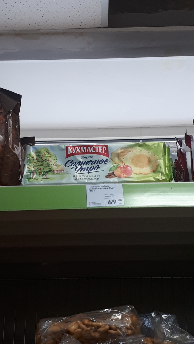 Начну свой обзор вот с этого печенья, которое лежит на верхней полке под потолком. Если бы я вдруг захотела его купить, я бы не смогла этого сделать, так как не дотянулась бы до него).