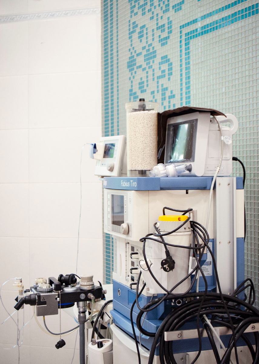 Вы можете запросить перечень для уточнения. Например, в клинике КенгаРу используется самое передовое оборудование, в первую очередь – немецкий наркозно-дыхательный аппарат Dräger Fabius Tiro. Также важно, чтобы в клинике было всё для проведения неотложной помощи – от дефибриллятора и заканчивая таким препаратом, как Дантролен (он крайне редко, практически никогда не используется на практике, но в случае, если понадобится, будет жизнеспасающим).
