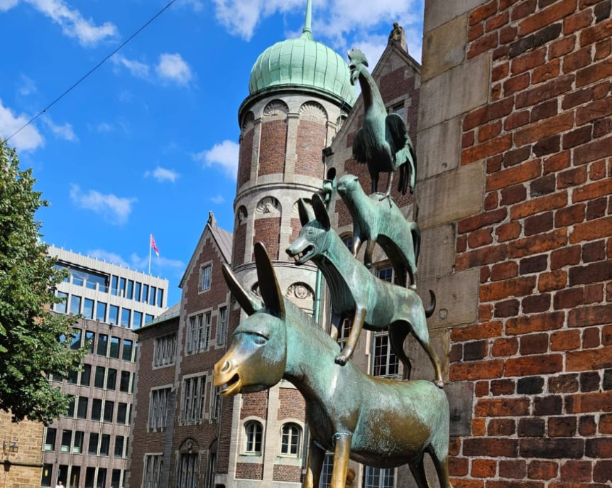 "Бремен, или облом всех советских и российских детей. Наверное, самый главный символ города - Бременские музыканты. Они тут везде, в том числе и на Марктплатц -одной из самых красивых площадей Европы (соглашусь) . Только в оригинальной версии сказки не было ни принцессы, ни трубадура.