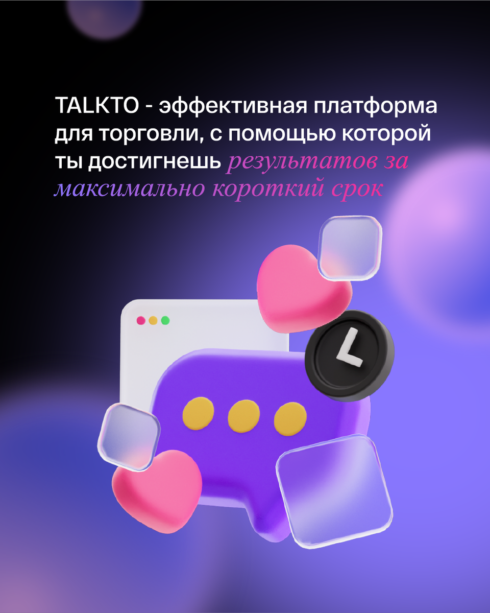 TALKTO — какая у нас история? Наш фаундер и опытный предприниматель - Илья Безруков, начинал свой большой путь с создания интернет-магазинов. Он мечтал создать свое уникальное детище, которое включало бы в себя решения для любой проблемы онлайн/офлайн торговли и не только. Так, со временем появилась платформа — TALKTO. Она объединила в себе огромное количество торговых процессов, автоматизацию и стала доступной для любого — даже начинающего предпринимателя. Сейчас наша платформа — это бренд, который объединяет в себе торговую платформу и комьюнити предпринимателей, а над ее улучшением работает большая команда из 40 человек. С нами ты можешь создать: — сайт с удобной навигацией и адаптацией под любые устройства — интернет-магазин с налаженой доставкой и платежной системой — процесс продаж в шоурумах, ярмарках и прочих офлайн площадках — мультиссылку с ссылками на все возможные каналы коммуникации с клиентом — красочную афишу на мероприятие или приглашение на праздник — Qr-м