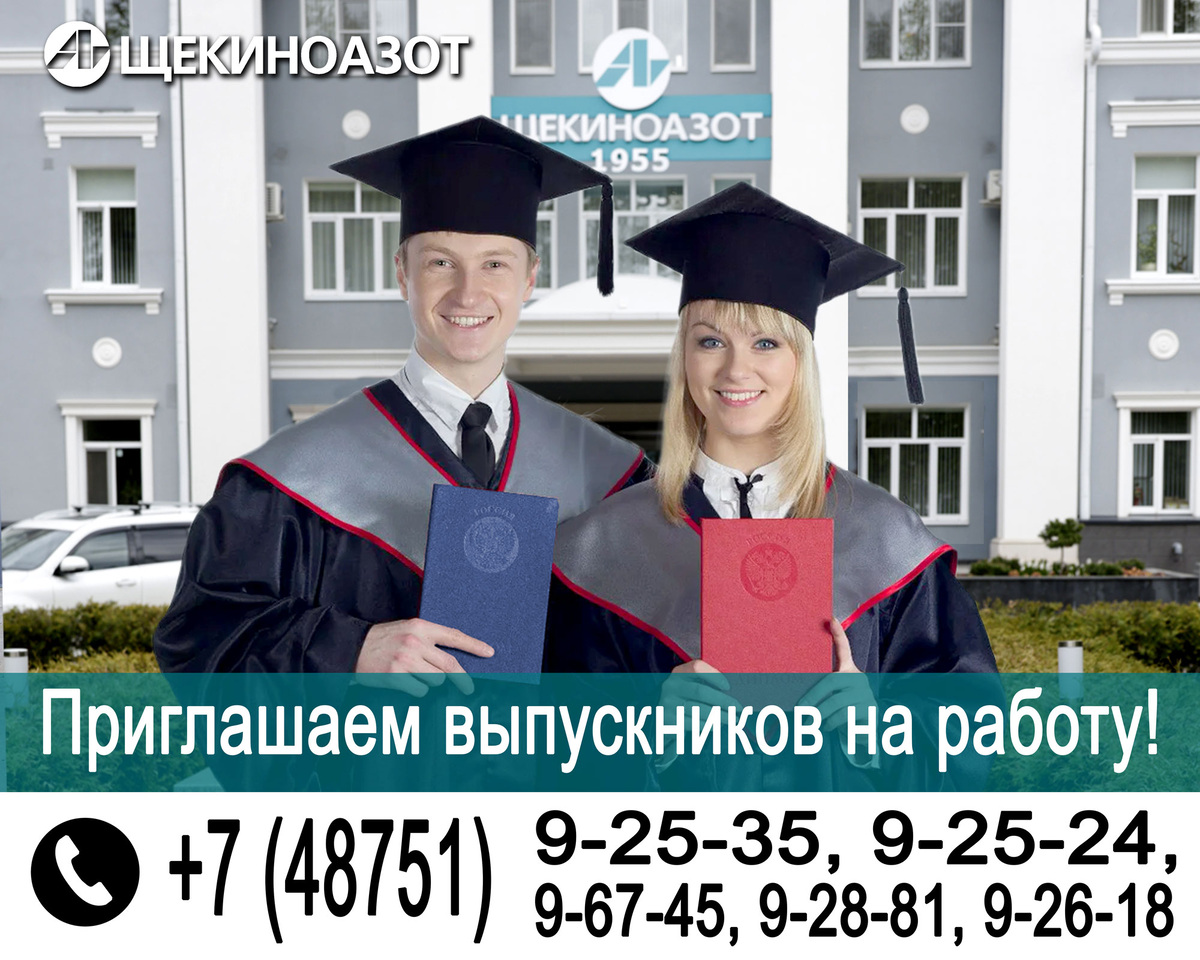 Позади экзамены и защиты дипломов. И многие уже успели отдохнуть. Самое время задуматься о поиске работы. У нас есть предложение для молодых специалистов, выпускников колледжей и вузов: работа на новых производствах, перспективы роста и развития, стабильный доход. А еще корпоративные мероприятия, спорт и досуг для молодежи, участие в общественной жизни при Сообществе активной молодежи «Щекиноазот» https://vk.com/cmcazot Вы еще не с нами?! Чего же вы ждете? Заходите на сайт http://career.n-azot.ru/ - узнайте о компании «Щекиноазот» больше. Подробности по телефонам: +7 (48751) 9-25-35, 9-25-24, 9-67-45, 9-28-81, 9-26-18. Добро пожаловать в команду!