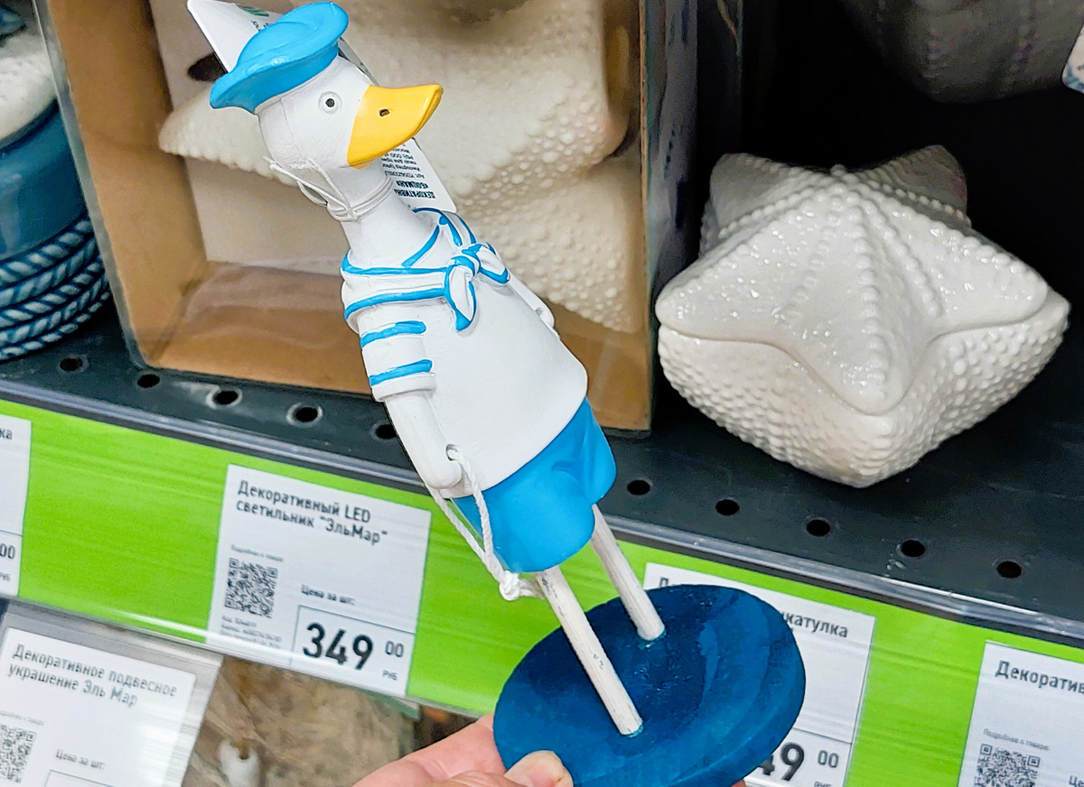 Приветствую! Сколько раз уже я замечала, что если взять товар с самого края полочки, то обязательно наткнешься на какой то казус. Так и в этот раз! Беру в руки этого утенка забавного, Вам показать. И не придала значения, что он держит просто пустую веревочку. А якорь с этой самой веревочки потерялся.