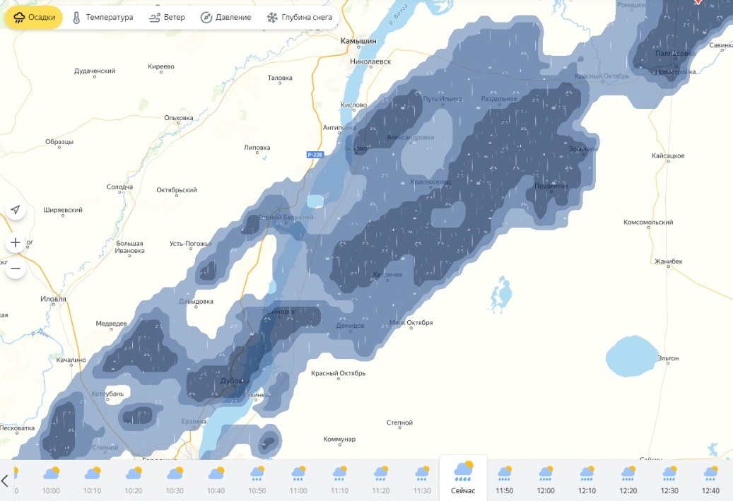 Экстренное предупреждение опубликовал телеграм-канал «Михайловка — ГО и ЧС». Здесь ссылаются на срочное сообщение от волгоградского ЦГМС. На отдельные муниципальные районы Волгоградской области обрушится сильный дождь, ливень с грозой, градом. И все это при порывах штормового ветра, который может достигать 20-25 м/с. Синоптики называют это комплексом опасных метеорологический явлений. Жители некоторых районов нашего региона уже могут наблюдать непогоду. Особое предупреждение было объявлено на период с 10:00 до 12:00 30 июля. Также все может продолжиться до конца сегодняшних суток. Не исключается, что шторм покажет себя и в ночь на 31 июля. Если верить карте осадков от «Яндекс», стена сильного дождя уже приблизилась к Волгограду. Очень сильный дождь, это на карте показано темным цветом, льет в эти минуты в Дубовке, в Котлубани, рядом с Мариновкой и Песковаткой, в Палласовке. Заливают осадки Быковский район. Волгограду достанется небольшой дождь, туча попадет в город к 14:00 дня, а затем
