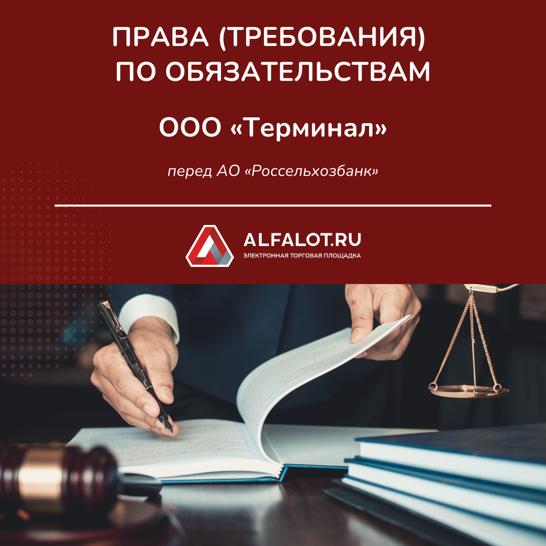 В форме аукциона на повышение продаются права (требования) по обязательствам ООО "Терминал" перед АО "Россельхозбанк" Начальная стоимость реализации: 203 018 633,33 ₽ Задолженность обеспечена имуществом залоговым имуществом: Месторасположение: г. Махачкала, пр. Акушинского 90В, в районе финансового техникума. Месторасположение: г. Махачкала, пр. А. Султана, район поворота на УМС. Месторасположение: РД, Левашинский район, с. Кутиша. Месторасположение: ЧР, Шелковской район, ст-ца Каргалинская, ул. Первомайская 2а. ТОРГИ: ССЫЛКА НА ТОРГИ
