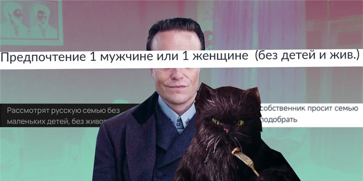 Но сложнее всего, мне кажется, по-прежнему «не славянам». В объявляниях этой строчки нет, но обычно хозяева квартир между Иваном и Мухаммадом выбирают первое. С детьми и/или животными все-таки можно найти варианты: люди думают, что в принципе человек с ребенком или котом — это надежный арендатор, он не будет пить и устраивать тусовки, зато сможет держать квратиру в чистоте. Но все семьи разные. И Иваны с Мухаммадами тоже.