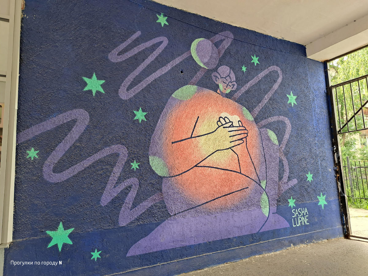 Сегодня, как и всегда, хочу познакомить вас с граффити и муралами, которые мы заметили в Екатеринбурге. Надо отметить, что в городе их достаточно много. Однако, далеко не все рисунки удалось запечатлеть. «Внутренний свет» - это сердце, которое своим светом зажигает звёзды на небосводе. По задумке автора - Sasha Lupine звезды и сердце персонажа покрыты краской, которая светится в лучах ультрафиолета, таким образом некоторые детали работы можно разглядеть только в темноте. Екатеринбург, улица Малышева, 98 В Саду им. Энгельса тоже можно найти парочку рисунков. Екатеринбург, Сад им. Энгельса На Спортивной школа №3 им. А.Д. Мышкина много граффити посвященных баскетболу. Также имеется и арт – объект, посвящённый чемпиону СССР Анатолию Дмитриевичу Мышкину. Екатеринбург, улица Бажова, 132 На улице Бажова когда-то в полной мере украшал фасад гимназии интересный мурал «Сказы Бажова», выполненный командой Custom Flava. Сейчас едва можно разглядеть портрет сказочника Бажова с помощью героев ег