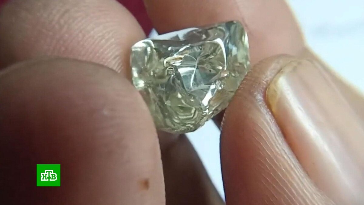 [ Смотреть видео на сайте НТВ ] В Индии погрязший в долгах бедняк нашел алмаз весом почти 20 каратов. Счастливчиком оказался мужчина, который раньше трудился то на полях, то на шахтах. В Индии бедняки иногда берут в аренду рудники для поиска полезных ископаемых, стоимость небольшого участка составляет 10 долларов в день. Найденный алмаз уже оценили почти в 100 тысяч долларов. Бывший рабочий уже строит планы. Он собирается рассчитаться с долгами, купить дом, а оставшиеся средства раздать родственникам. [ Смотреть видео на сайте НТВ ]