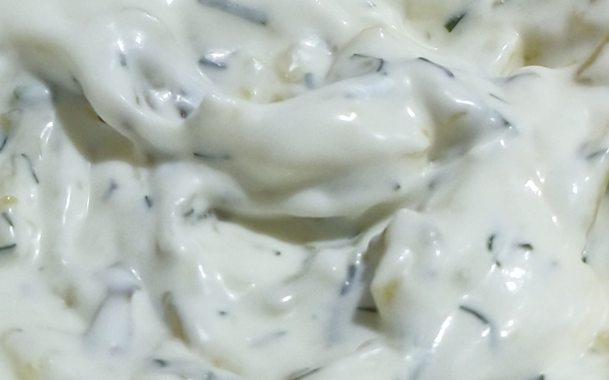 Соус, который очень вкусный, готовить его легко и просто. Сметана и майонез в равных пропорциях Свежий чеснок Свежая зелень Соль и специи по желанию Маринованный огурец Соус я готовлю на 1 раз. В небольшой тарелке смешиваем сметану и майонез, достаточно по 3ст.ложки. Натираем туда 1 зубчик чеснока. Нарезаем укроп свежий или замороженный Натираем 1 маринованный огурец Если вам недостаточно соли, то можно добавить щепотку, но обычно хватает чеснока и огурца для солоноватости. Можно добавить сушёный или свежий сельдерей, он придаст особый вкус и аромат, и свежий зелёный лук. Обязательно попробуйте . Приятного вам аппетита !