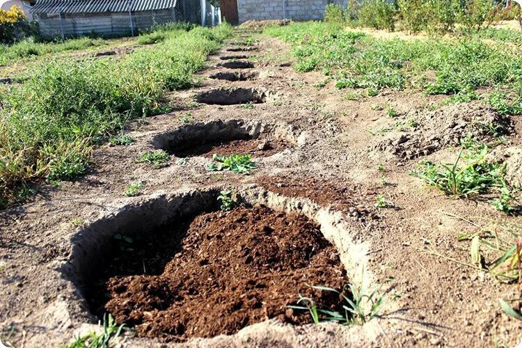 После 15 сентября откроется посадочный сезон, и, наверное, захочется обновить сорта, посадить что- то новенькое. В августе не так жарко, поэтому давайте этим воспользуемся и приготовим заранее посадочные ямы. Во-первых, вы точно будете знать, сколько деревьев и кустарников нужно приобрести. Во-вторых, неизвестно что будет с погодой на момент посадки, ведь не очень хочется возиться в земле под дождем. А самое главное, что ямы за это время созреют, осядут. Выкапывать огромные ямы глубиной 1 метр не имеет смысла, ведь все равно мы не сможем обеспечить деревьям и кустарникам комфортные условия на всю жизнь. К примеру, основная масса корней у косточковых культур располагается на глубине 60см, а вот в ширину со временем они уйдут на 3-4 метра. Поэтому капаем ямы 60 см глубиной, а шириной 70-80см. По мере роста дерева, примерно через 4-5 лет по периферии кроны мы будем выкапывать канавы, и закладывать плодородный грунт, обеспечивая корням хорошее питание. Выкапывая яму, верхний плодородный