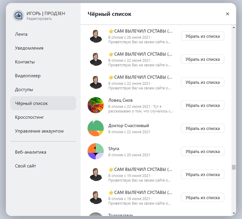У каждого канала в Дзене есть чёрный список — туда попадают комментаторы, которых вы заблокировали за какие-то прегрешения. Иногда комментатор просит его разбанить, обещая соблюдать писанные и неписанные правила поведения в вашем блоге. Сделать это просто — нужно перейти в настройки, найти пользователя и нажать кнопку «Убрать из списка». Правда, это работает, пока у вас заблокировано очень мало пользователей. Если же за долгое время существования канала вы заблокировали сотни или даже тысячи пользователей, то найти кого-то в списке не всегда просто. Дело в том, что список отсортирован по дате блокировки, и здесь легко можно найти тех, кого вы заблокировали недавно. Но если вы заблокировали пользователя давно, то запись о нём находится где-то в глубине списка. Можно попытаться сориентироваться по дате, но что, если вы её не помните? Тем не менее, отыскать пользователя можно: Список автоматически прокрутится до нужного пользователя, и вы сможете его разблокировать. 🔔Подпишитесь на канал