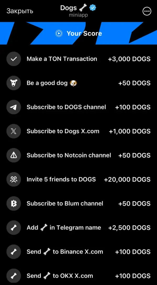 Команда дает нам возможность получить еще больше очков, особенно для тех, кто жалуется на то, что у них мало рефералов. Теперь - проект доступен каждому! В общем можно получить 25450 $DOGS на каждый аккаунт Telegram выполнив наипростейшие задания без вложений (+3000 за транзакцию 0.1 TON) DOGS — проект с максимально простой механикой, оно анализирует ваш аккаунт и сразу начисляет баланс будущих токенов! 1) Обмен рефералами в чате тг канала ДУРКА ХОЛДИТ 2) Банально близкие/знакомые. 3) Небольшая рассылка по чатам/группам с тематикой крипты, заработка, IT. 4) Буксы. Создаём задание за деньги на различных платформах/форумах Команда заявила, что все "новости" о листинги — чушь.