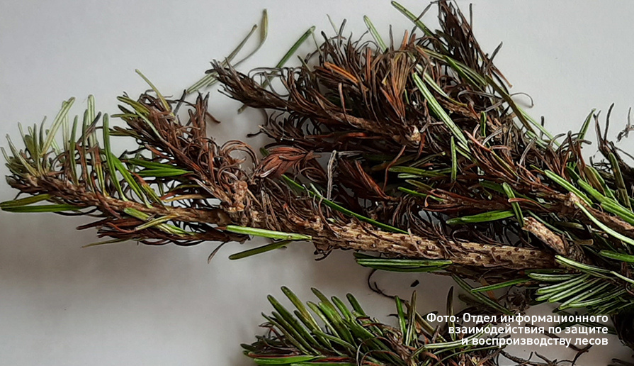 На территории Кизирского лесничества Красноярского края в насаждениях пихты сибирской примерно 40-летнего возраста было отмечено изменение цвета хвои – дехромация (пожелтение) в нижней части кроны. Пораженные деревья, по информации специалистов, рассредоточены по всей обследованной площади 82 гектара и не превышают 10% от общего объема деревьев пихты в составе этого насаждения.