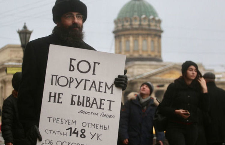 Я все понимаю, вопросы веры – интимны, сложны и очень деликатны. Но простите! Страна-то у нас все-таки светская. Я ничего не имею против того, чтобы люди придерживались какой-то религии. У них есть для отправления своих ритуалов и таинств специальные места и территории. И, оказавшись там, я должен, не смотря на свои взгляды, уважать их правила и не нарушать их запретов. Нельзя ломиться в шапке в алтарь православного храма или жевать бекон в мечети. Это действительно оскорбление, за которое нужно отвечать. Но… но и всё.