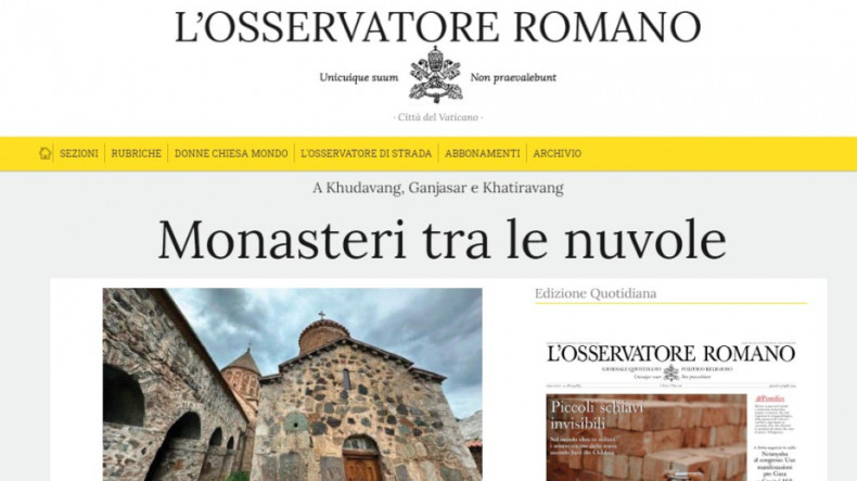 Азербайджан продолжает политику вандализма, уничтожения или присвоения культурного наследия Республики Арцах. В этой своей «деятельности» азербайджанцы нашли международных партнеров, к сожалению, в том числе и в Ватикане, написала депутат НС от фракции «Армения» Лилит Галстян. Так, в издаваемом в Ватикане периодическом издании L'Osservatore Romano за авторством Росселлы Фабиани на днях была опубликована статья «Истоки христианства в Азербайджане: по следам албанской апостольской церкви», в которой автор представляет свой так называемый исследовательско-познавательный визит в «Кавказскую Албанию», а на самом деле – в Арцах. «Ссылаясь на какого-то местного научного сотрудника, автор статьи тиражирует и закрепляет гипотезу о том, будто бы армяне в регионе – пришлый народ, якобы из Ирана и Турции. Согласно другому утверждению, местные армяне якобы заставили удин отречься от своей веры и стать последователями Апостольской церкви. Во время визита в Азербайджан Р. Фабиани сопровождала ученица