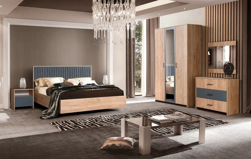 Интерьер не создает ощущение загруженности, тем не менее функциональность гарнитура полностью сохранена. Предметы мебели не заполняют комнату до отказа, их форма максимально простая.