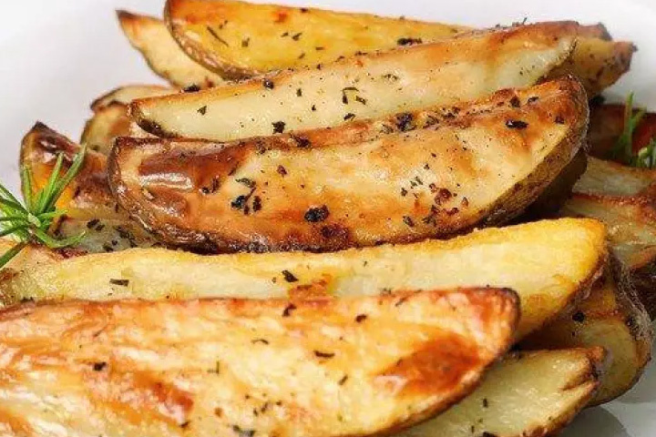 Запеченный картофель с чесноком и розмарином — это простой, но очень вкусный гарнир, который идеально подходит к любому основному блюду. Хрустящая корочка и ароматный вкус делают этот картофель настоящим украшением стола. Ингредиенты: * 800 г картофеля (лучше выбрать мелкий или средний размер) * 4-5 зубчиков чеснока * 3-4 ст. л. оливкового масла * 2-3 веточки свежего розмарина (или 1 ч. л. сухого) * Соль и черный перец по вкусу 1. Подготовка картофеля: * Картофель почистите и нарежьте на дольки или кубики (если картофель мелкий, можно запекать целиком). * Если нарезаете крупными кусками, старайтесь сделать их одинакового размера для равномерного приготовления. 2. Приготовление: * В большой миске смешайте оливковое масло, нарезанный чеснок, розмарин, соль и перец. * Добавьте картофель в миску и тщательно перемешайте, чтобы каждый кусочек был покрыт маслом и специями. 3. Запекание: * Разогрейте духовку до 200°C. * Выложите картофель на противень, застеленный пергаментом, в од