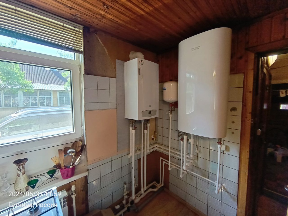 Ситуация: В доме с действующей системой отопления от электрического котла возникла необходимость установки газового котла с возможностью подключения бойлера косвенного нагрева. Задача заключалась в том, чтобы обеспечить возможность перехода на газовое отопление с сохранением электрического котла в качестве резервного источника тепла. Решение: Для реализации этого проекта была выполнена установка и обвязка газового котла с бойлером косвенного нагрева в существующую систему отопления и водопровода. Подробное описание процесса: 1. Демонтаж: В первую очередь, были демонтированы участки системы отопления и водопровода, необходимые для подключения газового котла и бойлера. 2. Монтаж газового котла: Газовый котел был установлен в специально подготовленное место, с учетом всех требований безопасности и правил эксплуатации. 3. Монтаж бойлера косвенного нагрева: Бойлер косвенного нагрева был установлен в удобном для доступа месте, с учетом его габаритов и возможности подключения к системе отопле