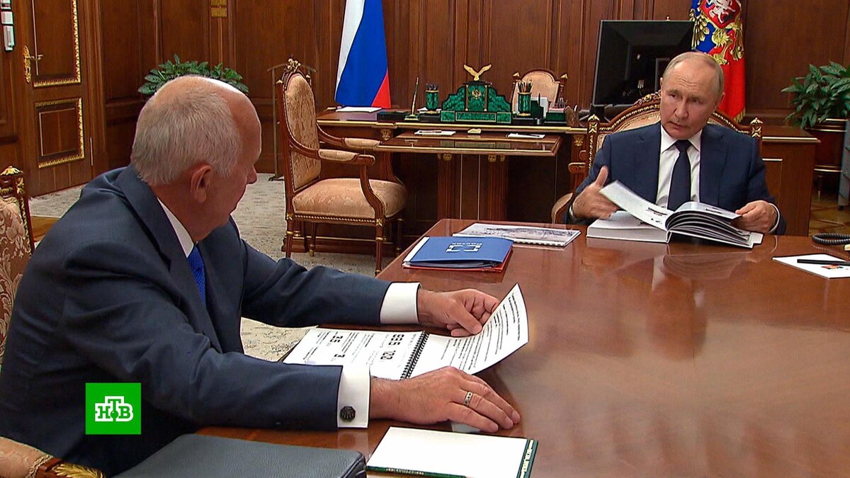 [ Смотреть видео на сайте НТВ ] В Кремле сегодня обсуждали производство новейшей военной техники. Владимир Путин провел встречу с главой госкорпорации «Ростех». Сергей Чемезов доложил, что гособоронзаказ выполняется. «Ростех» поставляет 80% всей военной техники, которая применяется в зоне СВО. Президент интересовался и гражданской продукцией. Сейчас она составляет 35% от всего, что выпускают предприятия «Ростеха». Прежде всего это медицинские приборы, в частности, аппараты для искусственной вентиляции легких. Много внимания гос-корпорация уделяет и развитию фармацевтического направления. Отчет, который Сергей Чемезов сегодня представил Владимиру Путину, был озаглавлен так: «„Ростех“ — надежная опора страны». Звучит громко, но у корпорации есть все основания считать так. Тем более в нынешнее время. Сергей Чемезов, генеральный директор государственной корпорации «Ростех»: «Традиционно у „Ростеха“ высокий процент исполнения гособоронзаказа, составляет 99,5 процента. При этом по особо вост