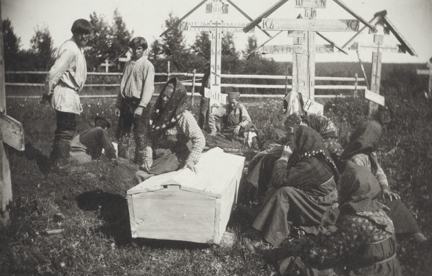 Когда русскому крестьянину приходило время задуматься о душе, он непременно должен был позаботиться о том, чтобы его собственный уход и жизни, равно как и кончина членов его семьи, была подготовлена надлежащим образом. Так, в обязанности мужа входило изготовление гробов для себя и своей супруги. При этом в прежние времена гроб делали долбленым, по форме человеческого тела – если гроб оказывался по размеру больше необходимого, это считалось дурным предзнаменованием и сулило смерть еще кому-то из ближайшей родни. В то же время гроб должен был быть «удобным» для покойного – ведь тело должно было лежать в нем до Страшного суда. К женским же обязанностям относилась подготовка похоронных («смертных») узлов – для себя, мужа и неженатых членов семьи пожилого возраста.