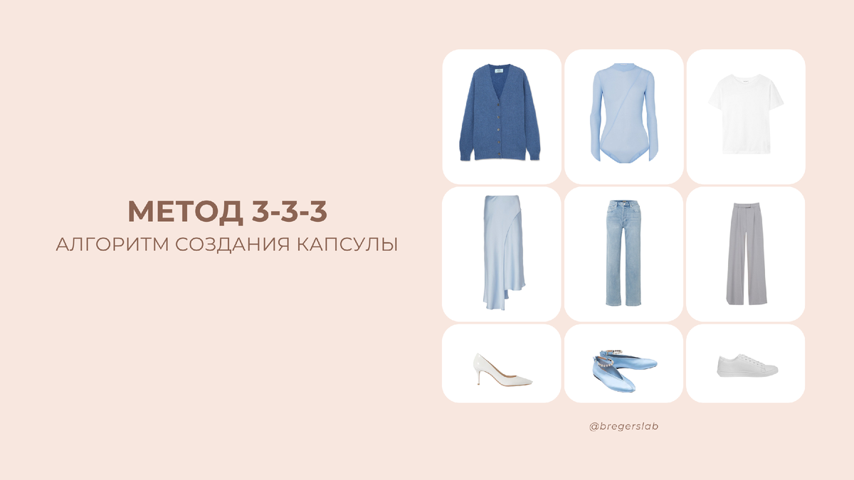 Думаю вы слышали про нашумевший метод создания небольшой капсулы 3-3-3. Этот метод уже потчи год покоряет интернет и многие модницы его активно используют 🙌🏼 Основная концепция, выбрать: 3 верха, 3 низа и 3 пары обуви. При этом нет ограничения по количеству аксессуаров, поэтому можно смело дополнять свои образы любимыми украшениями, сумками, ремнями и платками, создавая интресные варианты. АЛГОРИТМ СОЗДАНИЯ КАПСУЛЫ 3-3-3 ШАГ 1. ОПРЕДЕЛИТЕ СТИЛЬ И ПРЕДПОЧТЕНИЯ ДЛЯ КАПСУЛЫ Выберите основную цветовую гамму, которая вам нравится и подходит к вашему стилю. Это могут быть нейтральные оттенки, такие как белый, черный, серый, или более яркие цвета. Определите фактуры , которые вы предпочитаете, например, гладкие или фактурные, глянцевые или матовые, плотные или прозрачные. Подумайте, какие категории одежды лучше всего соответствуют вашему образу жизни, например, блузы, футболки, жакеты, брюки, джинсы и так далее. ШАГ 2. ВЫБЕРИТЕ 3 ВЕРХА Выберите три разных верха, например, рубашка, футболка