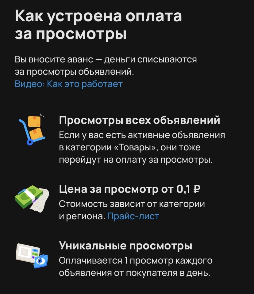 Пока некоторое время отсутствовала на Дзене, на Авито время зря не теряла. Успела перейти на тариф с оплатой за просмотры, и потратив 800 руб, вернуться обратно к привычному профилю. Как гласит легенда: продавцам, которые подключают данный тариф, через какое-то время поступает предложение подключить тариф с оплатой за успешную сделку. Собственно это и была моя главная цель перехода на тариф с оплатой за просмотры. К тому же хотелось узнать каково это размещать объявления без лимитов. Ну хотя стоит подметить, что лимиты, всё-таки, существую, но они довольно большие, что у меня столько вещей и не будет, поэтому для себя считаю, что тариф безлимитный. По рассказам авито-продавцом слышала, что многих устраивает данный тариф с оплатой за просмотры. Говорят, что выгодней выходит оплатить просмотры, нежели комиссию 7% за доставку. Перейдя на тариф, внесла аванс на счёт 600 руб. Этих денег мне хватило ровно на 10 дней. За этот период получила 951 просмотр на объявления и 4 заказа общей стоимос