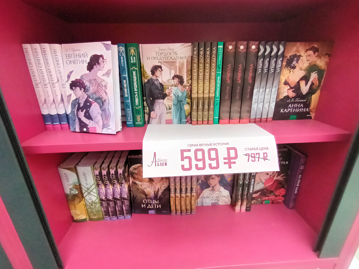 Клянусь, знать не знала, что в Питере проходят Книжные аллеи! И тем более не собиралась ничего книжного везти домой - чемодан небольшой, заполнен под завязку, что почитать - с собой взяли. Да мы вообще шли с Аннушкой, никого не трогали! Подуставшие после Петергофа держали курс на кафешку. А на Малой Конюшенной прямо на улице книжные стеллажи и развалы. Не так много, но очень разнообразно. Классика в самых разных сериях. От "МИФ"а с анимешными обложками: Романтичное оформление и невероятная тактильная приятность, тоже по 599: Бюджетная серия в мягких обложках, поменьше обычного формат: О Петербурге и его достопримечательностях детям: И взрослым: Современная литература: Остановились бегло посмотреть - и случилось странное. Стерлось чувство голода и ощущение времени. А когда я вспомнила, что где-то тут мой ребёнок голодный, оказалось, что ей как-то тоже не до меня. Ярмарка (или как это действо назвать?) пока не закрывается. Цены некоторые есть на фото. Для примера : ЖЗЛ 700 рублей, Пау