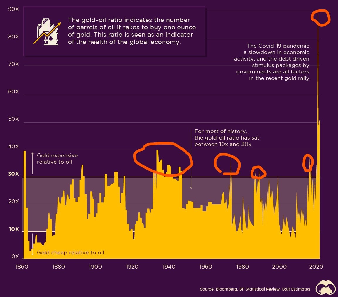 Цены на золото вновь достигли рекордных высот, а соотношение стоимости золота и нефти составило 1 к 30, что указывает на официальное начало глобального кризиса. Сейчас за одну тройскую унцию золота можно приобрести свыше 30 баррелей нефти. Это событие является важным индикатором экономической нестабильности. Графики показывают, что уровень выше 1/30 наблюдался во времена Второй мировой войны, во время нефтяных кризисов 70-х и 80-х годов, в период конфликта в Крыму, а также во время пандемии Covid-19. Ситуация не улучшится в ближайшее время — банки по всему миру продолжают активно накапливать золото, поскольку в условиях обесценивания доллара, вызванного американскими санкциями, это драгоценное металл становится надежным активом для инвестиций.